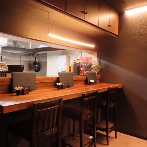 カウンターもございます。店主が調理している姿を眺めながら、お食事を楽しむことができます。お一人様でもお気軽にご来店ください!